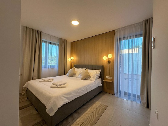 Villa Kinkeli 138 m², is the self service accommodation for 6 people, with the large garden, nicely looked after, with the open swimming pool at disposal to the guests only. 1000 m² plot is also at your disposal. House is next to the place Žminj, in the inhabited village of few houses and is propitious for families with children or for couples. The villa consists of the living room and three bedrooms, with 2 bathroom, and 1 separate wc. The kitchen and the space for dinning. Conditioning and electrical heating facilities are provided.