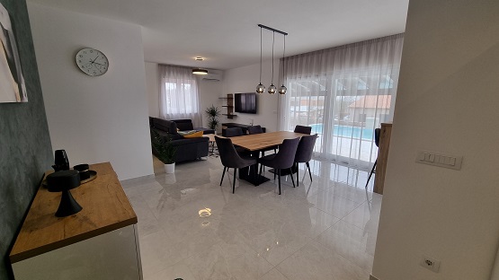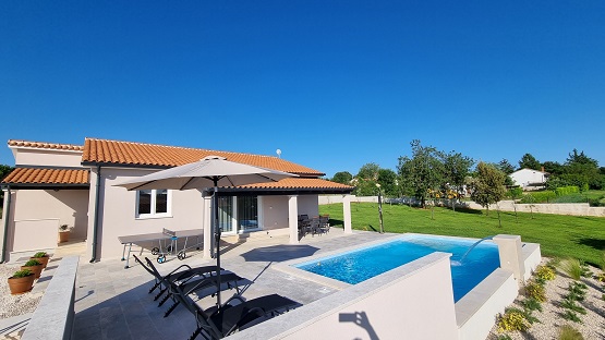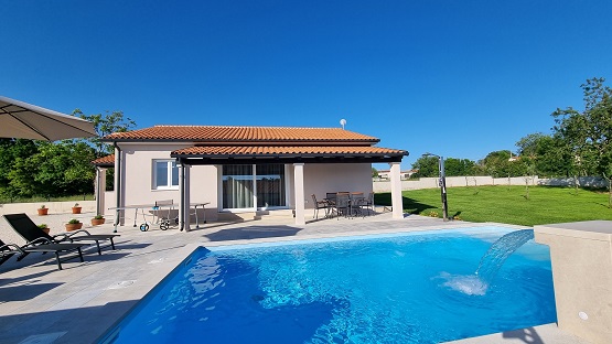Villa Taya is a newly built villa, near the town of Sveti Petar but thanks to its location offers complete privacy and peace. Villa is situated on a large piece of land 2000mq. Surrounded by meadows and forests. The house has a large pool and a covered terrace with dining table. Three bedrooms, 2bathrooms. In the common area there is a kitchen, dining room and living room with sofa, TV. The kitchen is fully equipped. At your service are: beach chairs, towels, bed linen, wi-fi, use of air conditioning, parking.